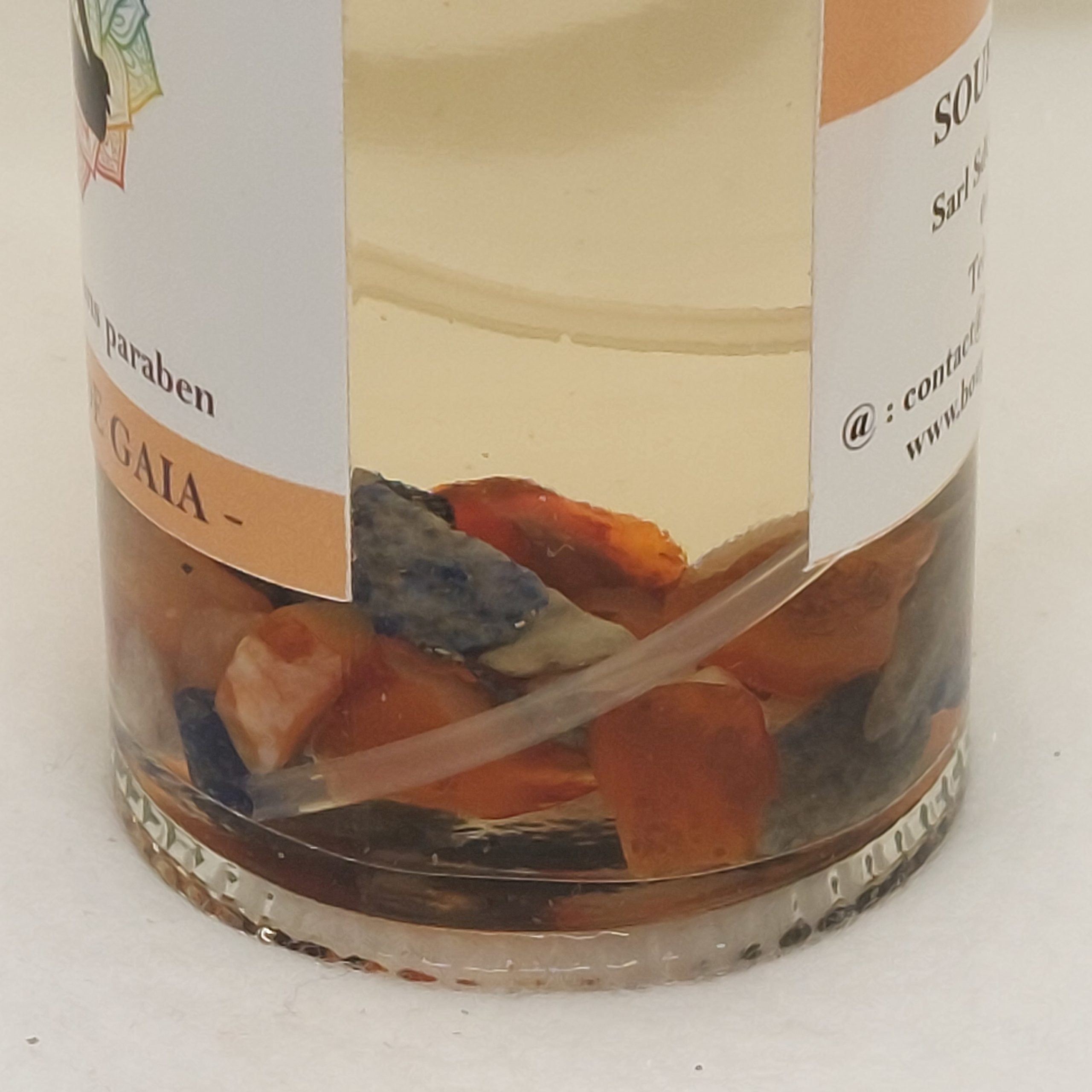 - Pierres de lithothérapie du parfum d’ambiance confiance en soi : Cornaline rouge, Lapis-lazuli et Pierre de soleil.