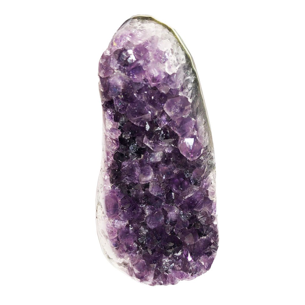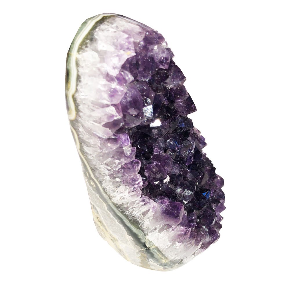 La druse d’améthyste est un assemblage naturel de cristaux violets, souvent de forme aplatie. Ses cristaux sont tous orientés dans une même direction. Elle est différente de la géode qui a plutôt une forme de caillou dont l’intérieur est rempli de cristaux violets. Tous les cristaux de la druse d’améthyste multiplient la diffusion de leur énergie dans une pièce et permettent de purifier l’ensemble de notre intérieur de maison ou au bureau. Ils agissent également sur soi. Cette druse d’améthyste est d’abord une améthyste avec toutes ses caractéristiques. Elle possède cette couleur violette, en raison de la présence de fer, de manganèse et de titane. C’est un minéral avec une origine magmatique et hydrothermale. Ce quartz a une dureté de 7.