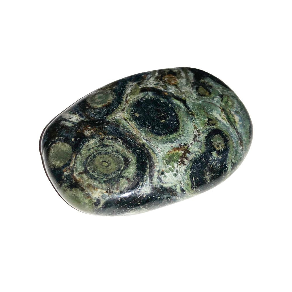 Découvrez ce superbe galet en jaspe kambamba, un bel objet décoratif aux nombreux bienfaits lithothérapeutiques. Le jaspe kambamba est une pierre qui vient principalement d’Afrique du Sud et de Madagascar, même si on trouve aussi d’autres gisements en Inde, aux Brésil, aux Etats-Unis, en Allemagne et même en France. Le jaspe kambamba est une pierre de tranquillité et de paix, imprégnée des énergies nourrissantes de la nature. Cette jolie pierre de couleur noire et verte alignera les énergies de votre corps avec votre énergie mentale, émotionnelle et spirituelle. La pierre jaspe kambamba conviendra parfaitement aux amateurs de lithothérapie en quête de protection, de calme et d’équilibre. De plus, cette jaspe sera votre meilleur alliée pour la méditation, vous permettant de chasser les ondes négatives et de vous connecter au plus profond de vous-même.