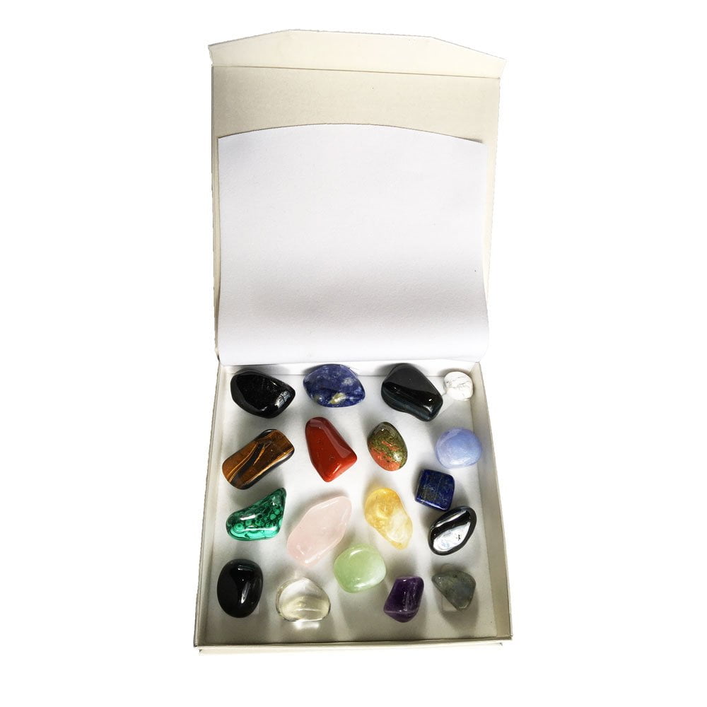 Le coffret de 18 pierres roulées France Minéraux comprend :