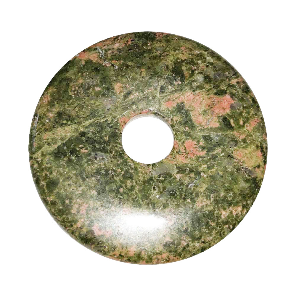 - Le pi chinois ou donut Unakite en 50mm est parfait pour stimuler le chakra du cœur. Ce dernier a pour vocation d’améliorer votre capacité respiratoire, votre circulation sanguine et de vous ouvrir à l’amour de vos proches pour vous apporter un sentiment de sérénité et d’apaisement.