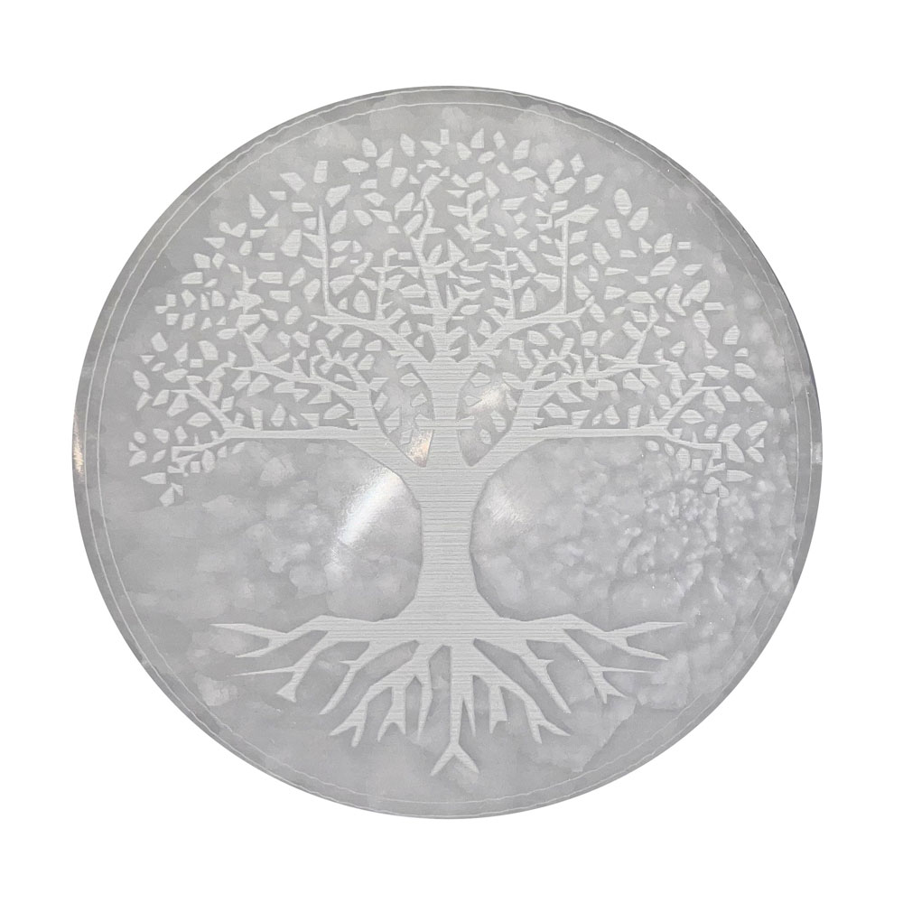 Chakra correspondant au Plaque de rechargement Sélénite – Arbre de vie – 14cm