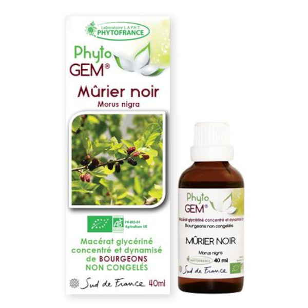 Composition : bourgeons de mûrier noir (Morus nigra), eau, glycérine, alccol.