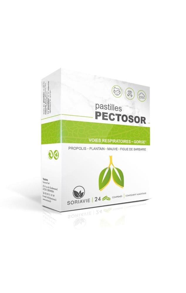 Les pastilles Pectosor sont formulées pour apaiser les voies respiratoires, adoucir les maux de gorge et soulager les symptômes du rhume et de la toux. Elles renferment des extraits de Propolis, de Plantain, de Mauve et de Figue de Barbarie, des plantes traditionnellement utilisées pour leurs vertus sur la sphère ORL. Ces pastilles offrent une libération progressive des principes actifs, assurant une action adoucissante tout au long de leur absorption. Cependant, leur usage est déconseillé pendant la grossesse sans avis médical.