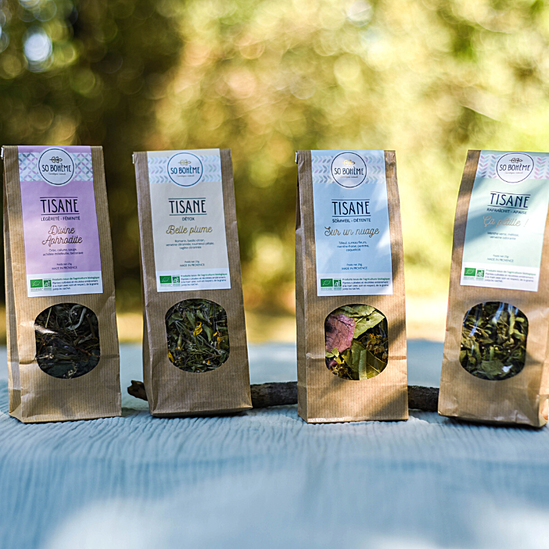 Cultivées et récoltées dans le Luberon, ces plantes sont chouchoutées par les soins de la tisanière qui respect leurs rythmes de vie dans un cadre sauvage.