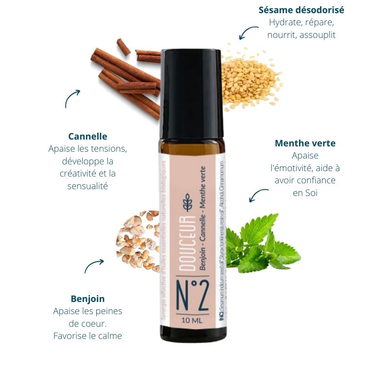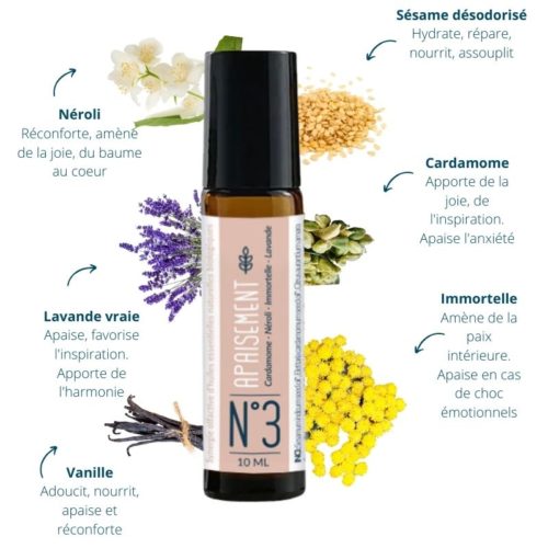 - Roll-on parfumé N°5 Bonheur : Un mélange harmonieux d’huiles essentielles d’Amande Amère, de Néroli et de Bois de Santal, parfait pour favoriser la positivité et l’équilibre émotionnel. Voir le produit