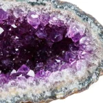 Associée au chakra coronal (Sahasrara), l’améthyste est considérée comme un pont entre le monde matériel et le monde subtil. Elle facilite la méditation, ouvre l’intuition et encourage les rêves lucides. Beaucoup la placent dans un espace sacré pour purifier l’aura, dissiper les énergies négatives et renforcer la conscience de soi. Utilisée en géode ou en druse, elle élève la fréquence vibratoire d’une pièce, créant une atmosphère sereine et propice à la contemplation. Pour les praticiens de soins énergétiques, elle constitue un outil de protection, permettant d’accompagner le client sans subir ses charges émotionnelles.